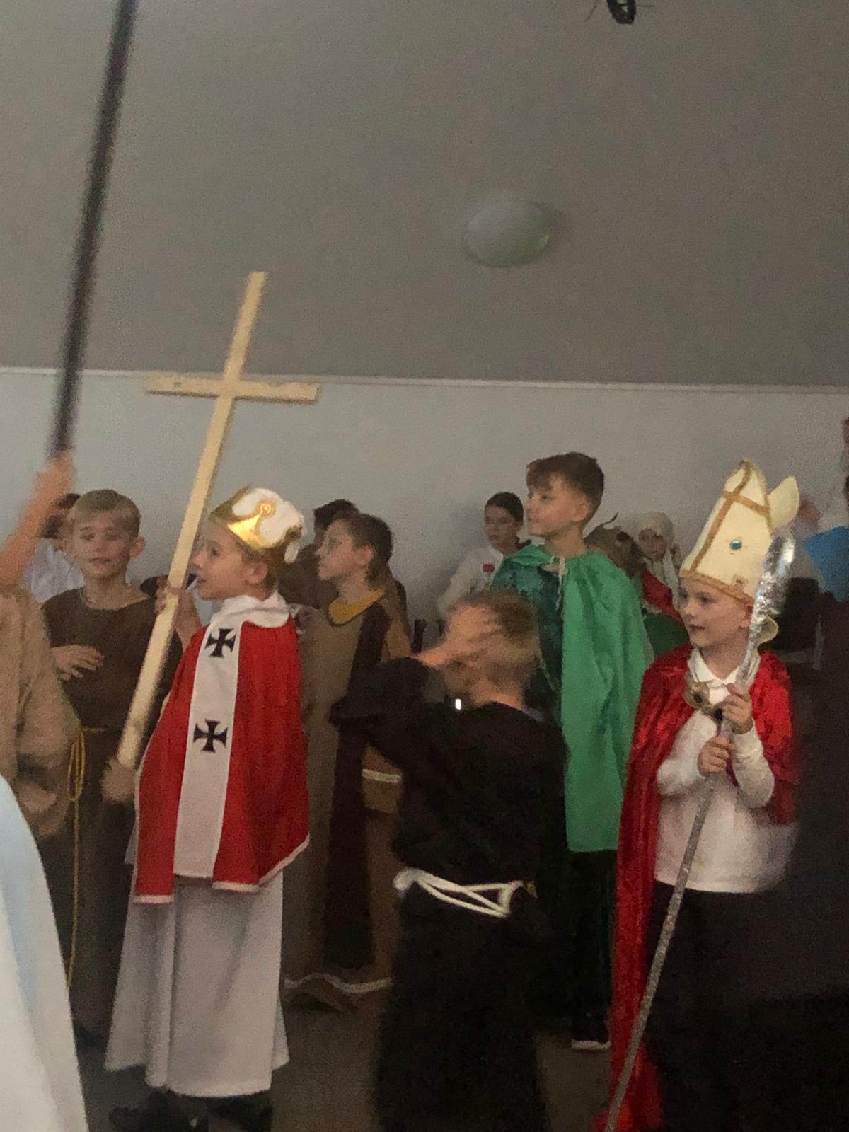 Uczniowie klasy 8 zaprezentowali pełną humoru scenkę pt. „Witamy w Irlandii”. W tle można było usłyszeć typową irlandzką muzykę i zobaczyć slajdy z Zielonej Wyspy.