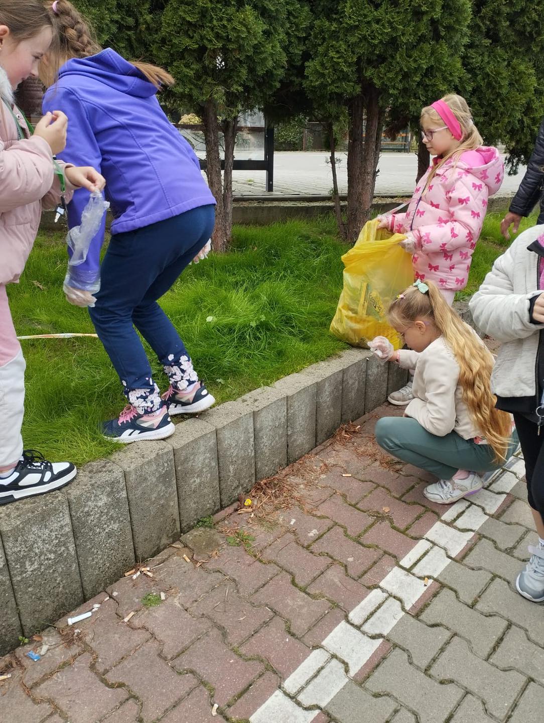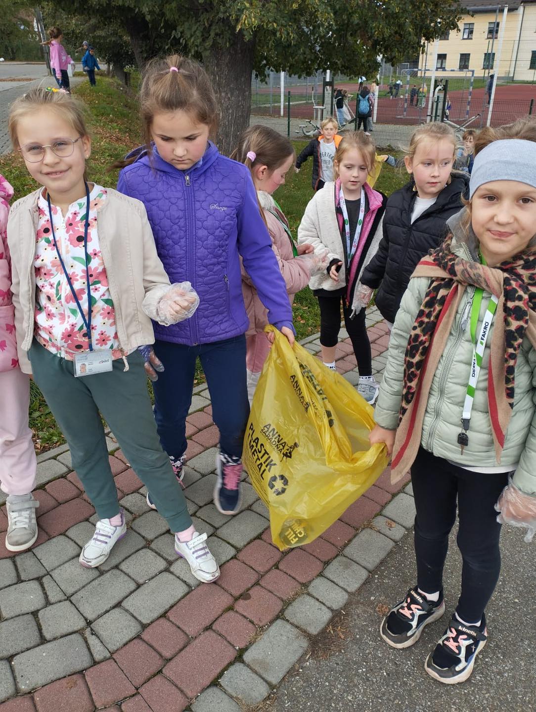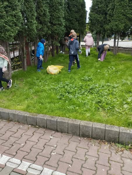 Z uśmiechami na twarzach sprzątały swoje najbliższe otoczenie, dbając o naszą piękną ziemię. Po skończonej pracy na dzieci czekały pyszne jabłka i soczek, które dodały im energii do dalszych działań. To wspaniały sposób na naukę odpowiedzialności i troski o środowisko!