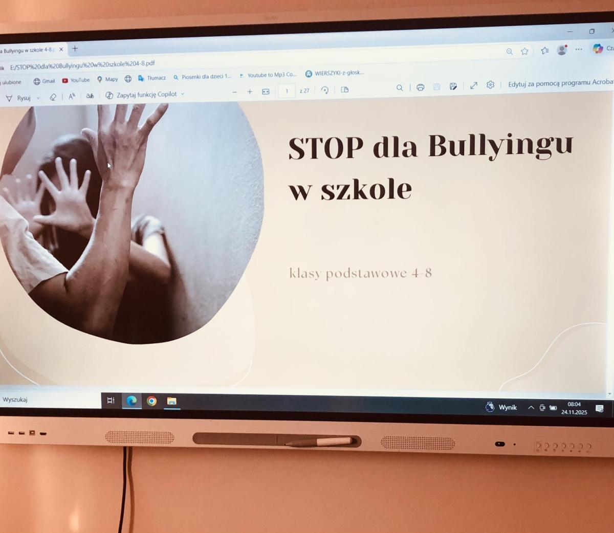 Dnia 24 listopada odbyły się warsztaty profilaktyczne pt. „Stop Bullyingowi w szkole”. Uczestniczyli w nich uczniowie klas IV-VIII, którzy wspólnie poznali sposoby radzenia sobie z agresją i budowania pozytywnych relacji.