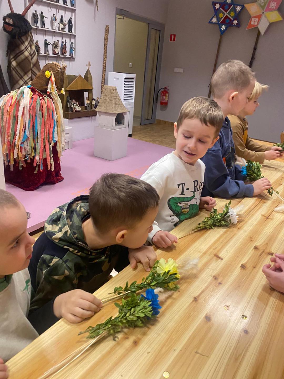 Mali odkrywcy z naszego przedszkola odwiedzili Muzeum Lachów Sądeckich, aby zgłębić tajniki naszego regionalnego dziedzictwa. Dzieci z dużym zaciekawieniem poznawały zwyczaje i tradycje wielkanocne, które kultywujemy od pokoleń. Podczas warsztatów wspólnie tworzyły piękne palmy wielkanocne, ucząc się ich symboliki i znaczenia. Ta wizyta to nie tylko nauka o świątecznych obyczajach, ale też świetna okazja do rozwijania wyobraźni, kreatywności i poczucia przynależności do naszej kultury. 🌸✨